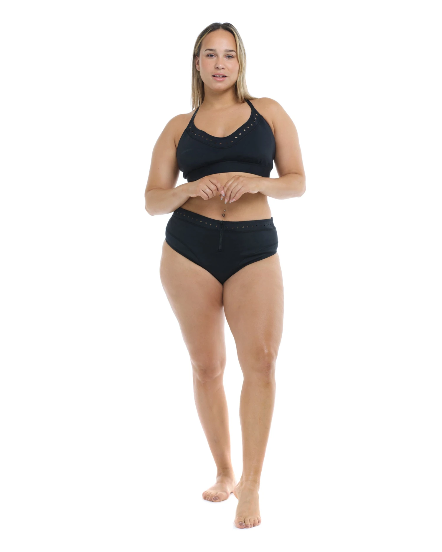 Have you met Ruth? This fixed triangle bikini top has all the bells and whistles! Designed with all-day comfort in mind, it has a supportive bottom band to keep everything in its right place. Ruth also has removable soft cups, an adjustable back, and sleek clean finish seams to tie the look together!