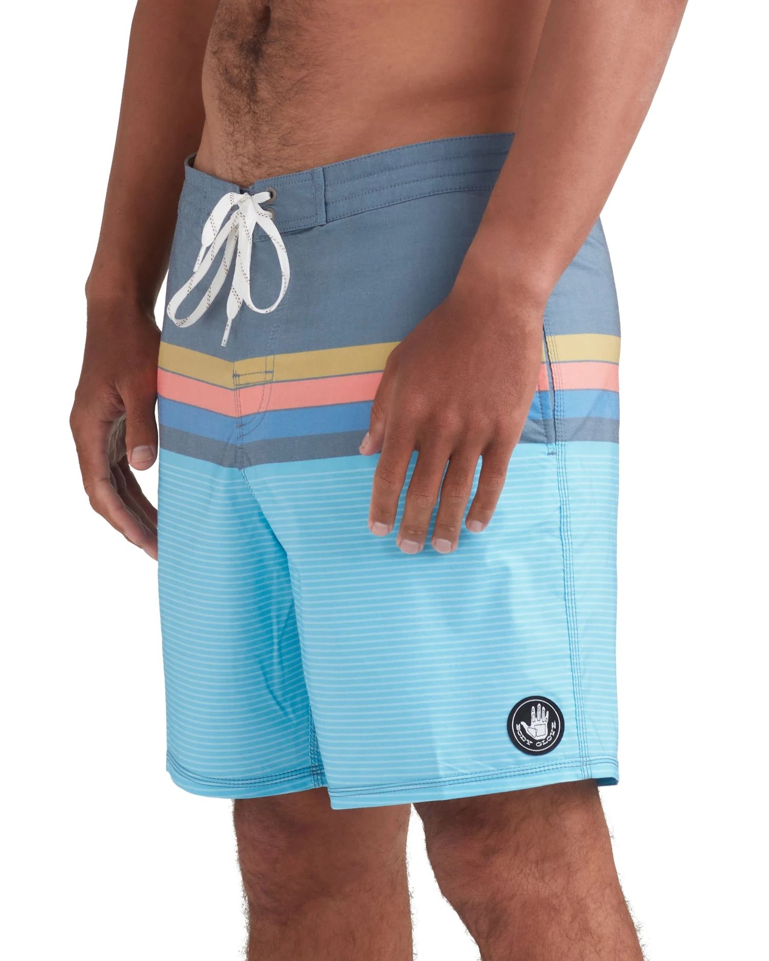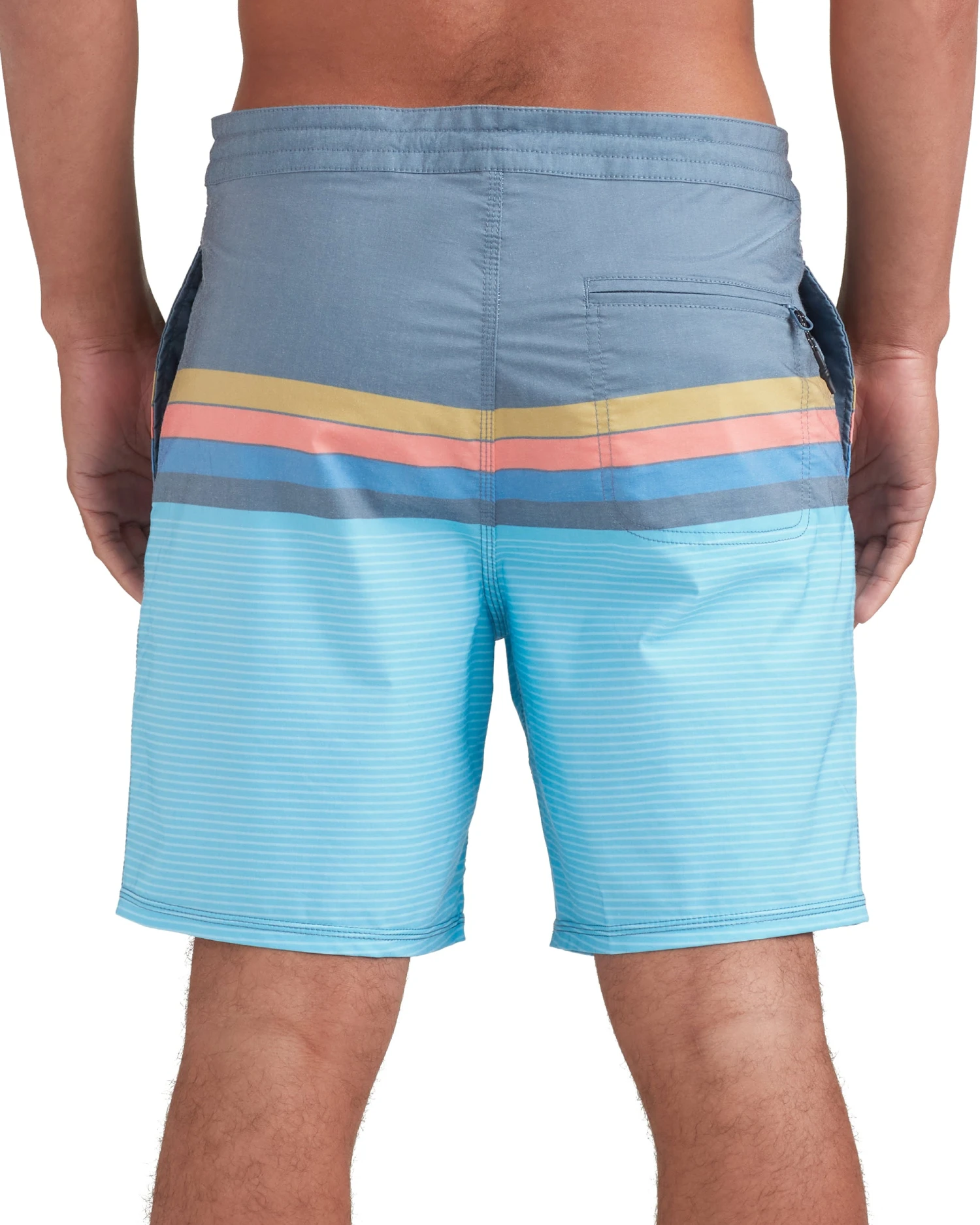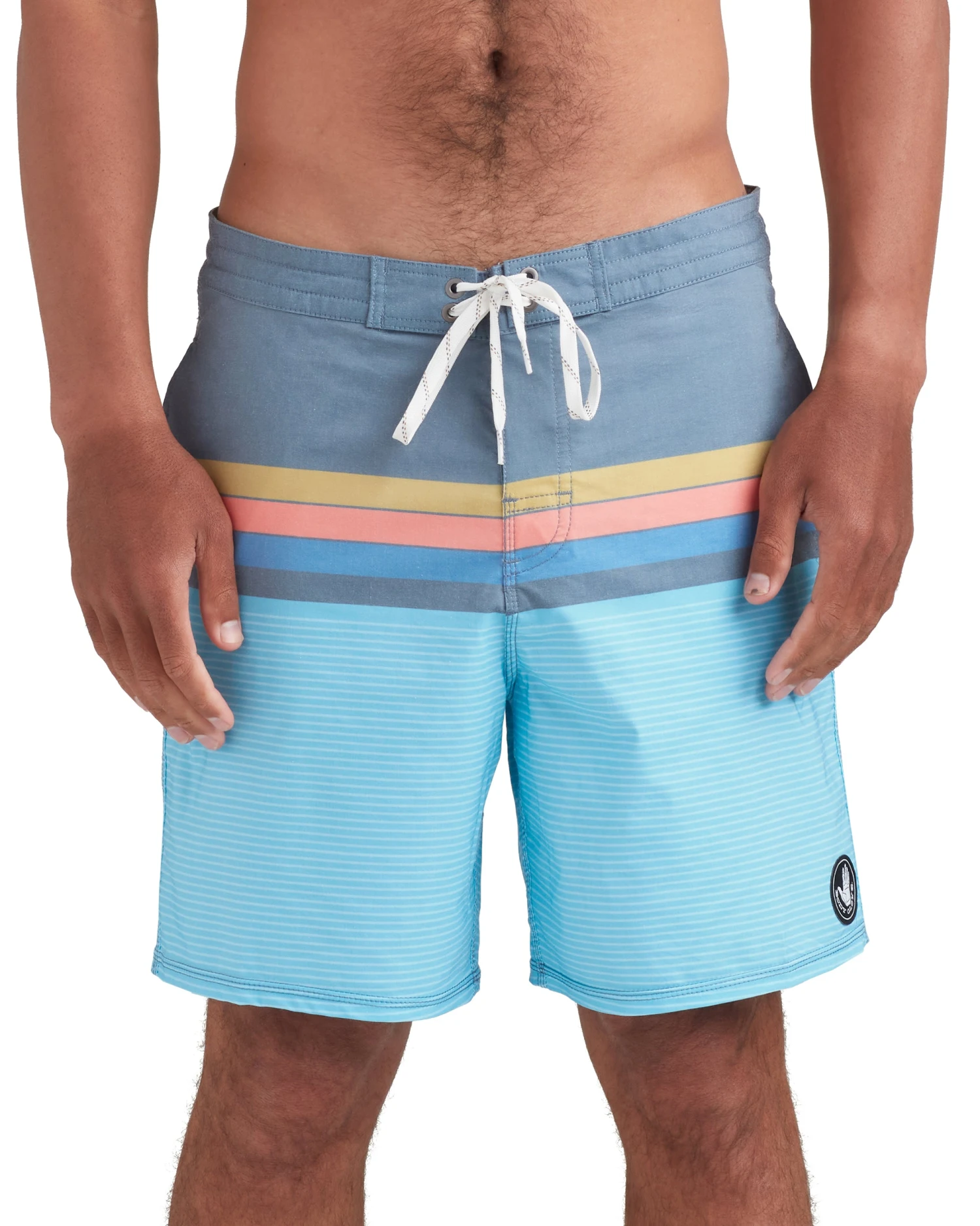 When you’re ready to surf your heart out, the Horizons 18” Boardshort will get you in the zone. Built of a 2-way stretch fabric that features a classic block print with contrasting horizontal stripes, this short is complete with dual-seam hand pockets, a back-patch pocket with Velcro-flap closure, and a Lycra fly with adjustable drawstring waistband for that perfect fit on or off the water.
