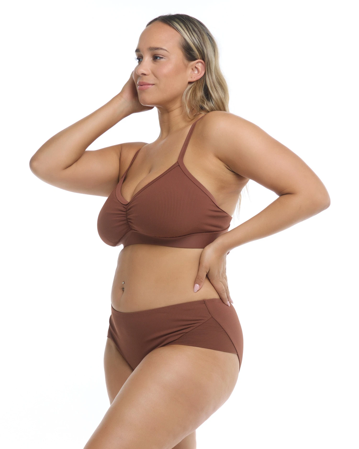 She’s modern, she’s supportive, she’s got the magic touch for a larger bust. She’s Drew, our new fixed triangle bikini top.  Drew is designed w for a dose of flair, removable soft cups for versatility, a front power mesh, a wider under-bust band for enhanced comfort, and an adjustable tie back that provides the support you need – and deserve. Available in sizes 1X, 2X & 3X.
