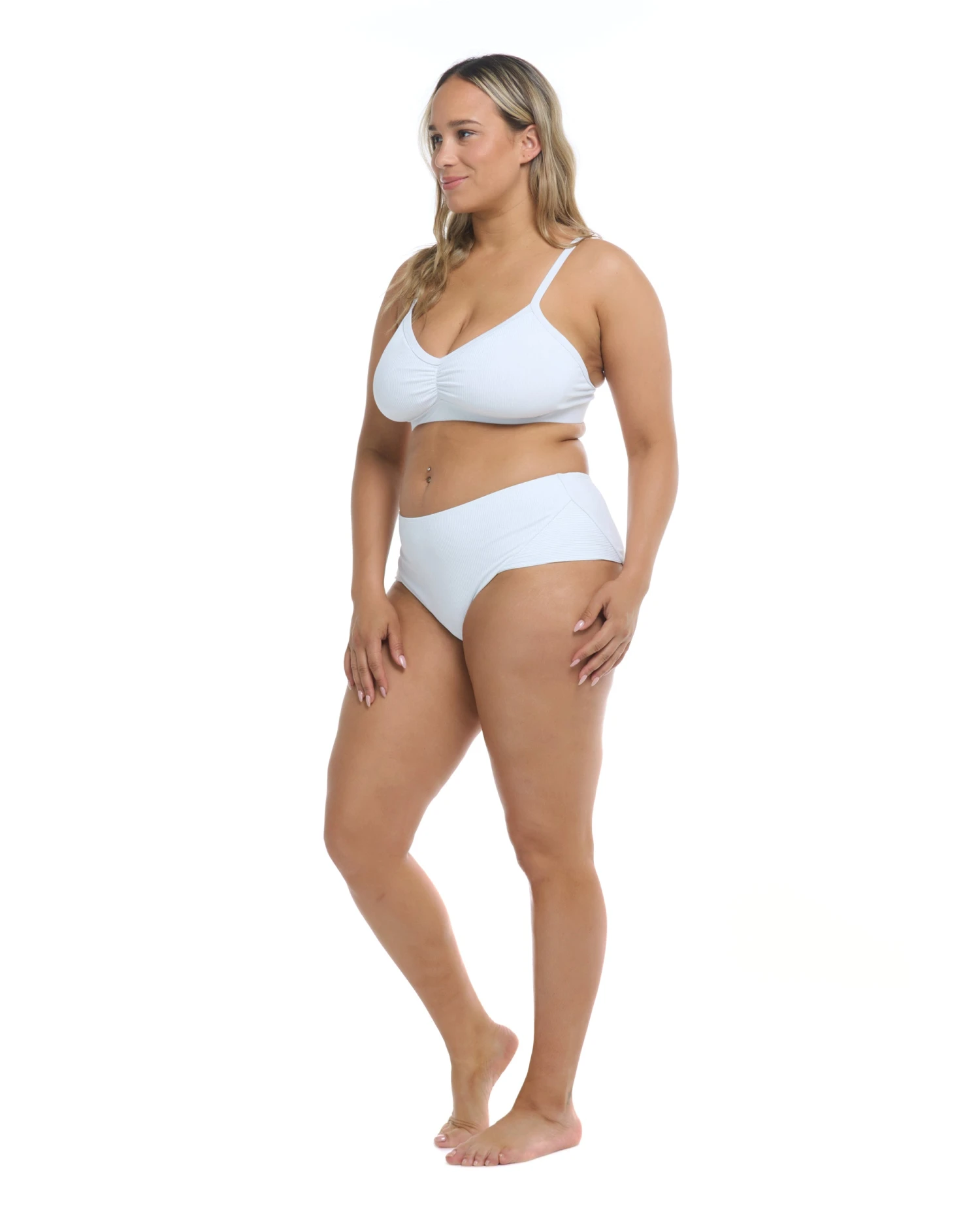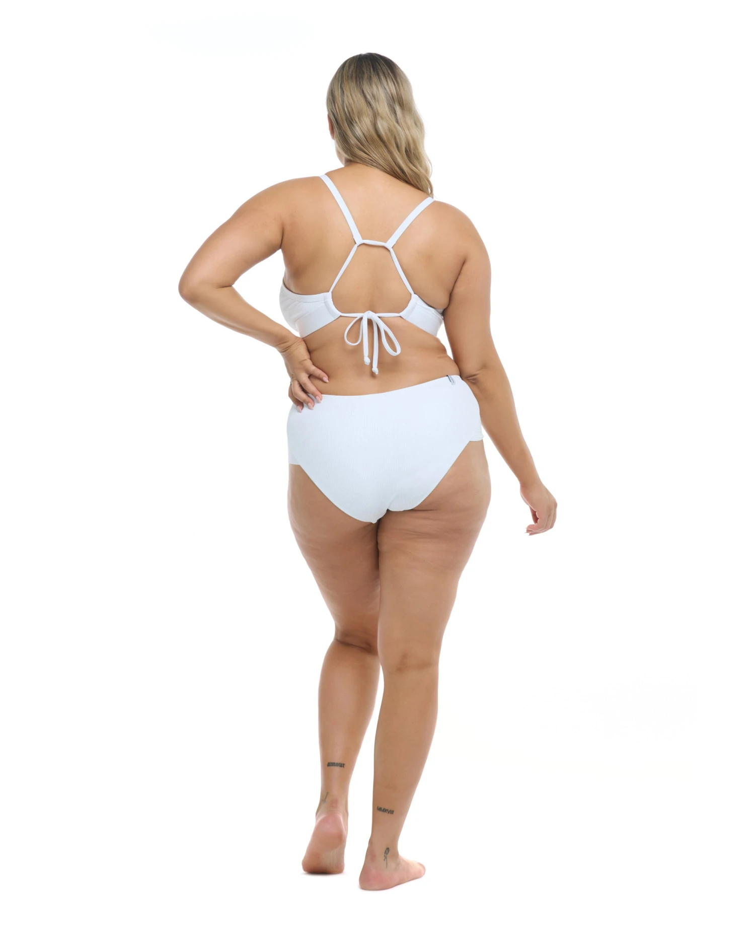 She’s modern, she’s supportive, she’s got the magic touch for a larger bust. She’s Drew, our new fixed triangle bikini top.  Drew is designed w for a dose of flair, removable soft cups for versatility, a front power mesh, a wider under-bust band for enhanced comfort, and an adjustable tie back that provides the support you need – and deserve. Available in sizes 1X, 2X & 3X.