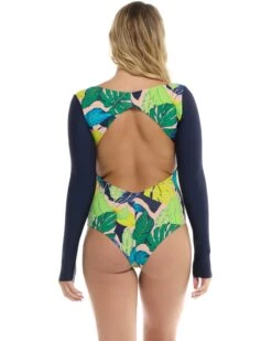 The Chloe paddle suit is so stylish, it’ll make you want to throw on a pair of high-waisted jeans and head straight to dinner. Chloe is essentially a water-friendly bodysuit, featuring long sleeves, an open back, a sloping v-neckline, and flatlock seams. Its UPF 50 REPREVE® recycled fibers protect against the sun’s rays, and mid coverage around back makes this silhouette perfect for everyone.