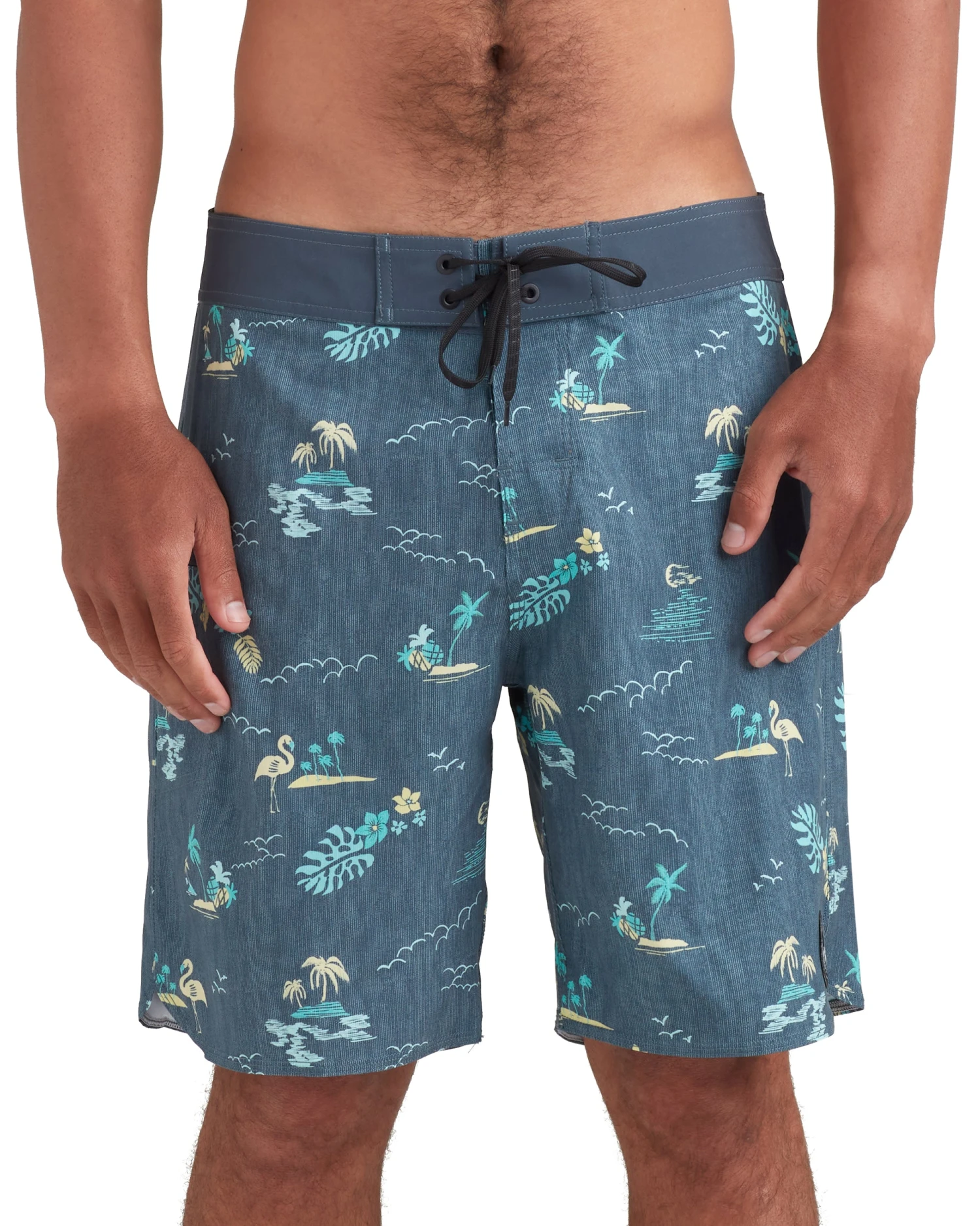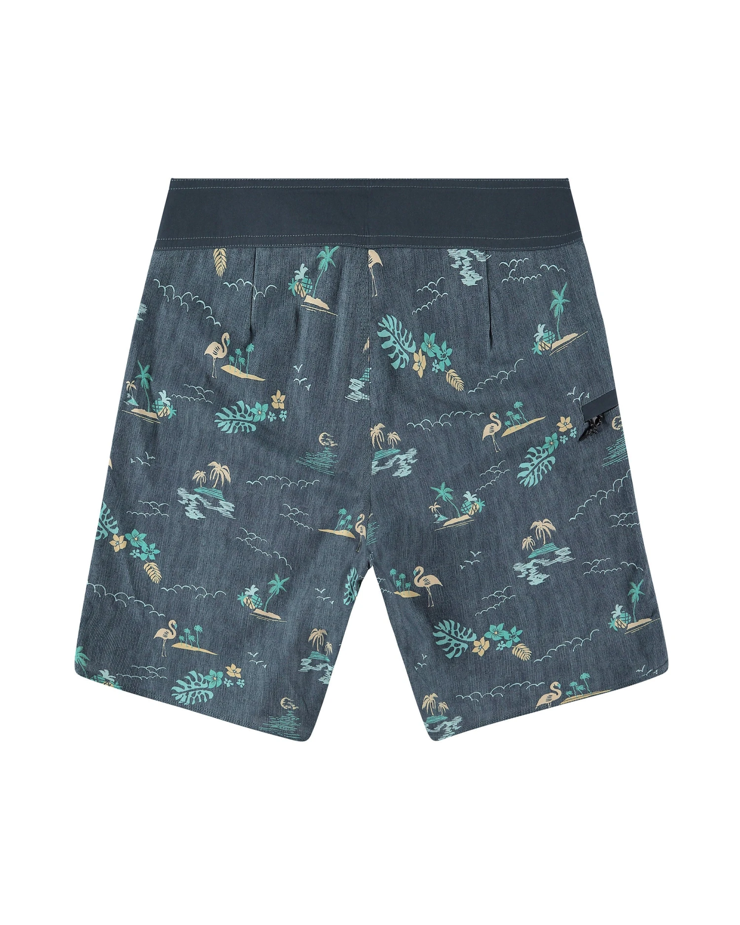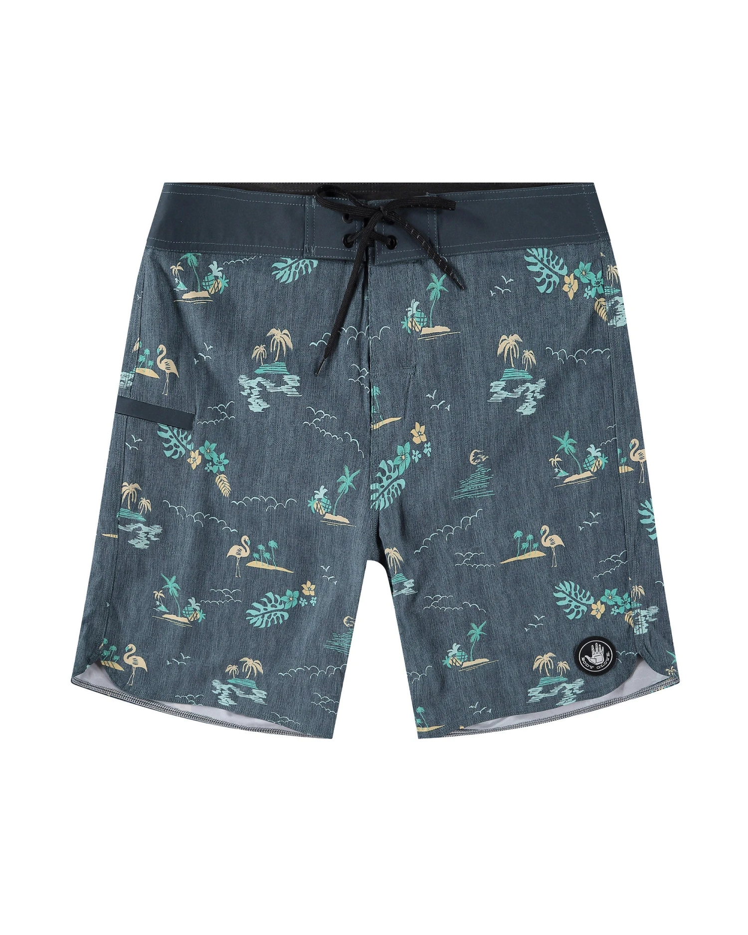Set your clock to island time and kick back in the Mojave 19” Boardshort. Featuing an all-over array of tropical flora and fauna, this relaxing boardshort is built of a butter-soft, 4-way stretch fabric and is complete with a side-zip pocket and Lycra fly drawstring closure. Vacation mode: Engaged!