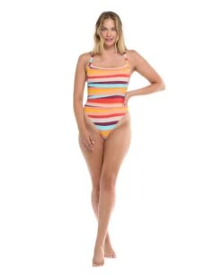 Channel some serious feminine energy with Electra: This one-piece has a classic feel with tons of sophisticated flair. Electra features a shelf bra and removable soft cups, coupled with design details like a mod square neckline, flattering high leg, criss-cross open back, and cheeky coverage.