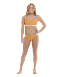 We teamed up with Pro surfer Tatiana Weston-Webb to bring you a swimwear collection made from recycled materials. he finest pebble dropped in the middle of the ocean will still create a ripple where it plunged beneath the surface. The collection was designed with small but mighty actions in mind: its recycled jacquard fabric diverts textiles out of landfills, so we can make our own little imprint within the fashion industry. Each of the waves in this sunny orange collection represents an opportunity to impact our world – and the more goodness we choose, the bigger our ripple will be.Â