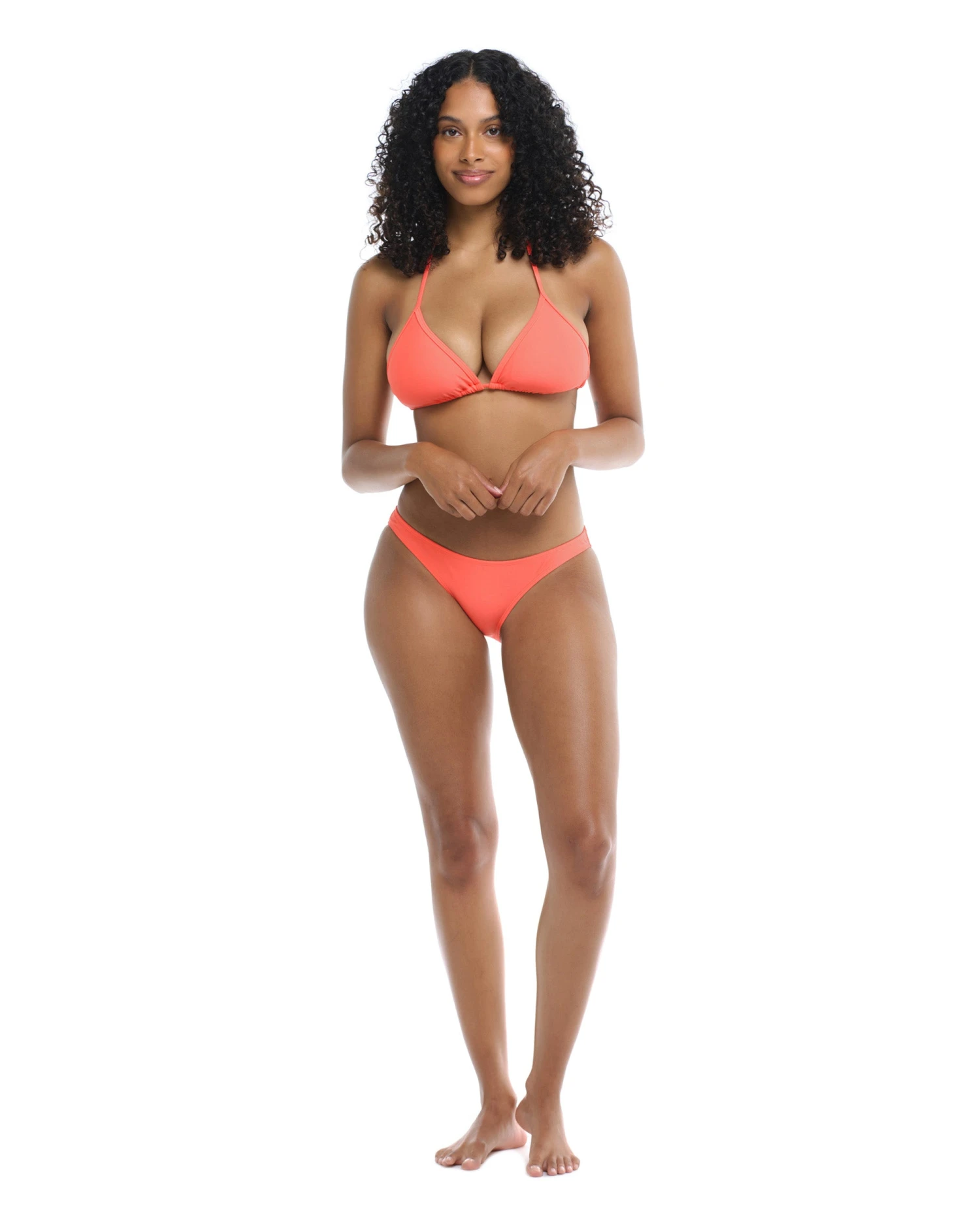 You can’t beat classic! The Dita is a simple triangle slider featuring removable soft cups and ties at the neck and back. Super-easy to adjust to your body’s unique curves, this top is also available in a D cup for those who need a little extra coverage.