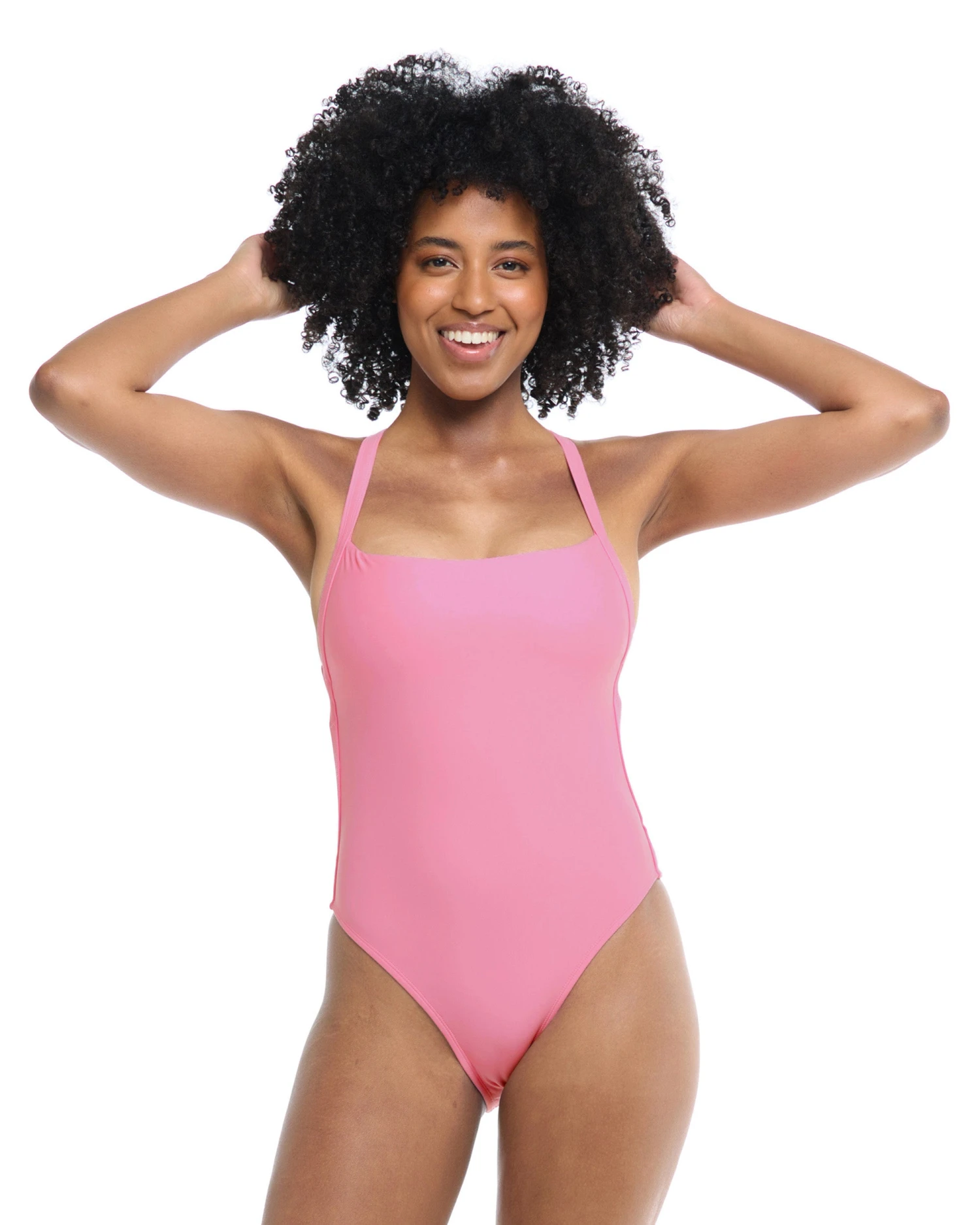 Channel some serious feminine energy with Electra: This one-piece has a classic feel with tons of sophisticated flair. Electra features a shelf bra and removable soft cups, coupled with design details like a mod square neckline, flattering high leg, criss-cross open back, and cheeky coverage.