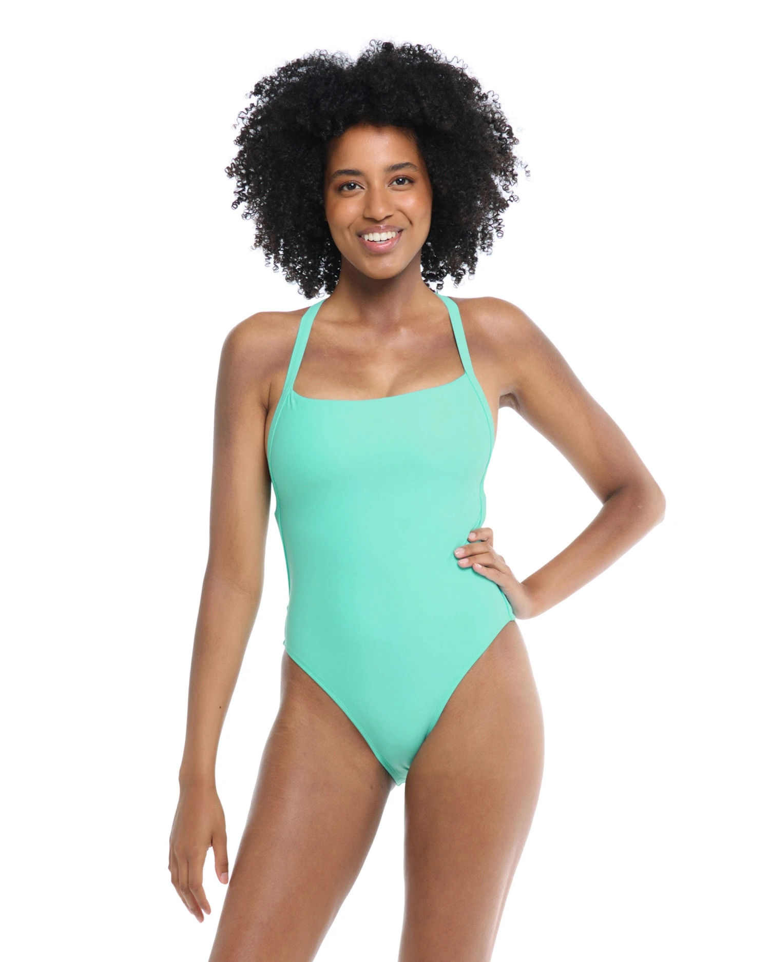 Channel some serious feminine energy with Electra: this one-piece has a classic feel with tons of sophisticated flair. Electra features a shelf bra and removable soft cups, coupled with design details like a mod square neckline, flattering high leg, criss-cross open back, and cheeky coverage.