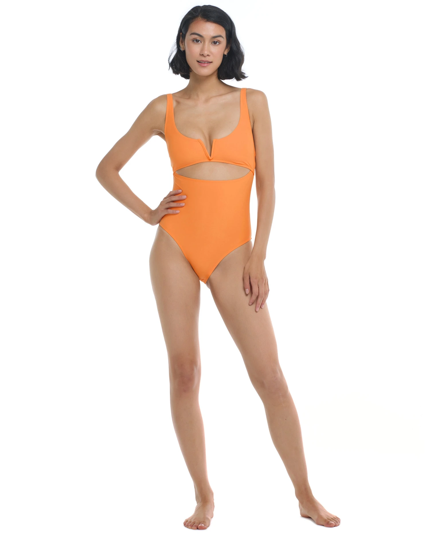 The Eli one-piece is all about the dreamy details. An elegant cutout and structured v-wire front detail will have you feeling like a force of femininity, coupled with comfort-forward features like a supportive shelf bra and removable soft cups. Around back, the Eli offers medium coverage for your booty.