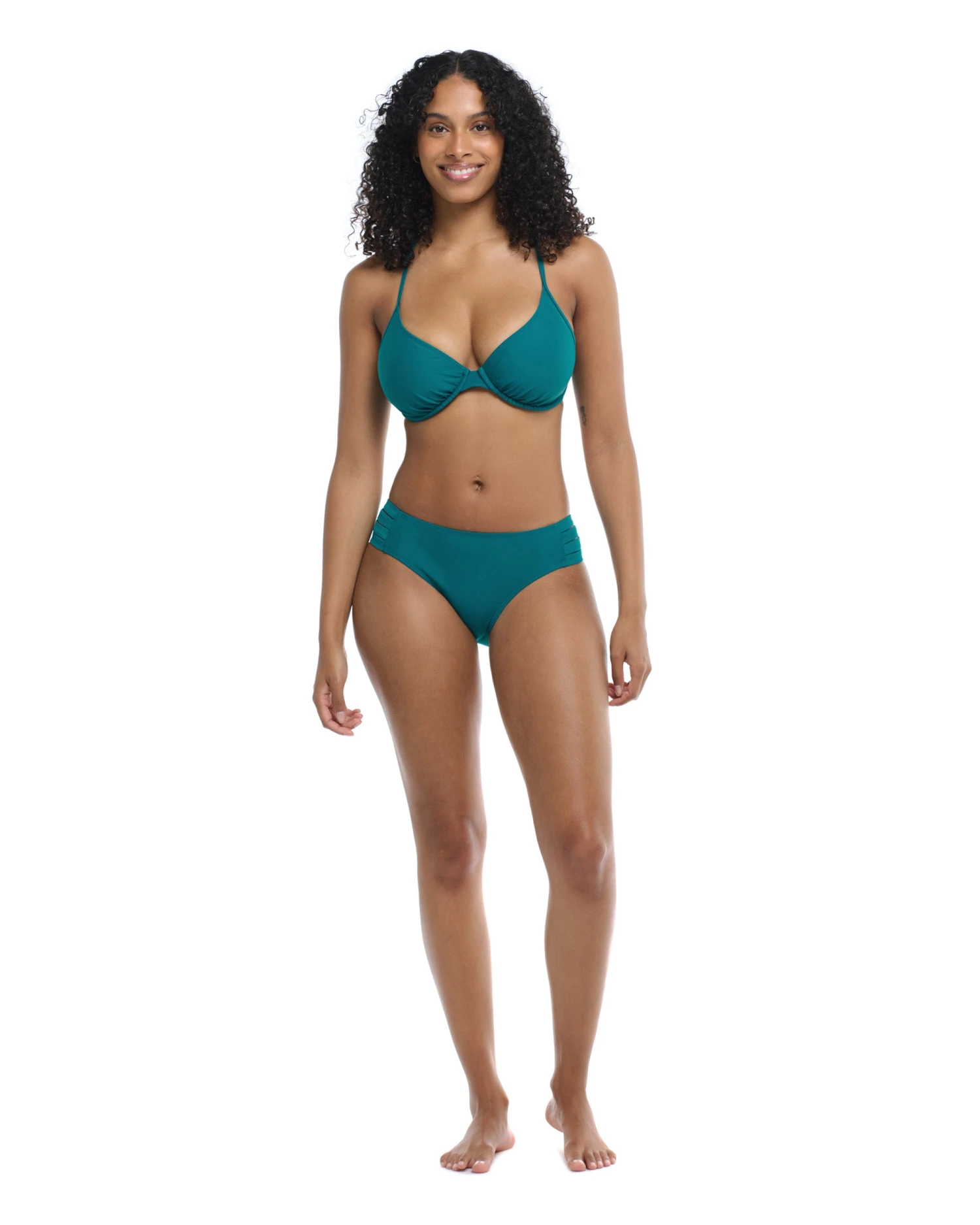 The Solo is our crowd-pleasing D-, DD-, E-, and F-cup underwire bikini top. Designed with simplicity, comfort, and support in mind, the bra-style Solo is constructed with power mesh and adjustable two-way back straps to gently hug and support the bust all day long.