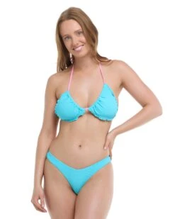 You can’t beat classic! The ribbed fabric Dita is a simple triangle slider featuring merrow edges, removable soft cups and ties at the neck and back. Super-easy to adjust to your body’s unique curves, this top is also available in a D cup for those who need a little extra coverage.
