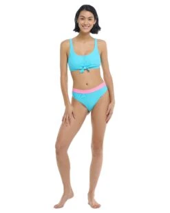 Kate is like your favorite comfy tee, repackaged as a super-cute swim top. This tank-style piece features playful accents like ribbed fabric, buttons, and a trendy tie on the front, plus removable soft cups and a built-in shelf bra so you can customize your fit.