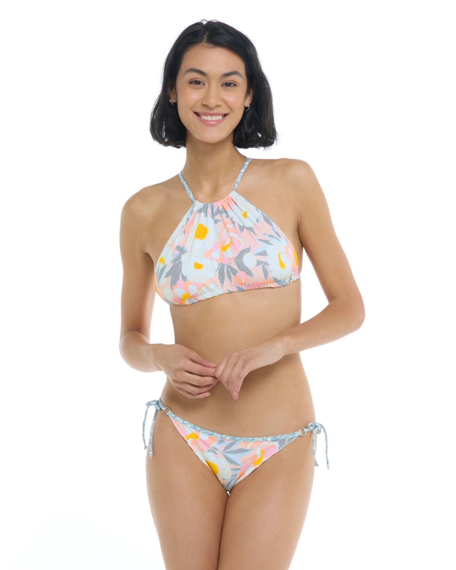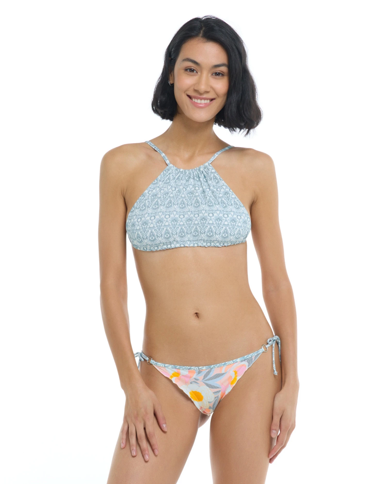 Styled after the classic halter tank, our Sage bikini top has a silhouette like no other. Its high-neck design is equal parts sporty and sleek, with removable soft cups on the inside and a two-way tie back to customize your fit.